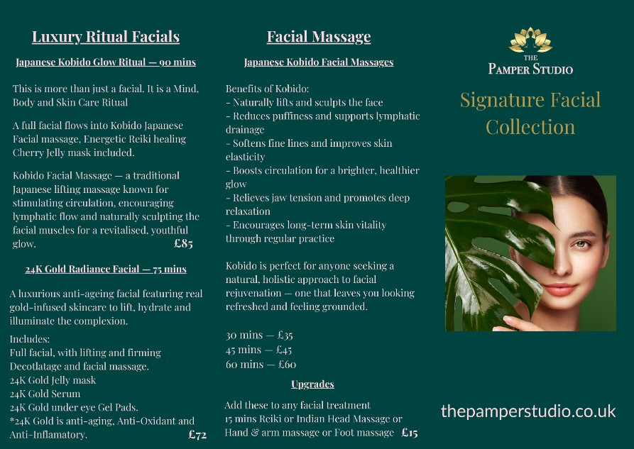 Text, WhatsApp or FB messenger on 07545283355 or email info@thepamperstudio.co.uk to start the conversation, discuss your requirements and book your Appointment.